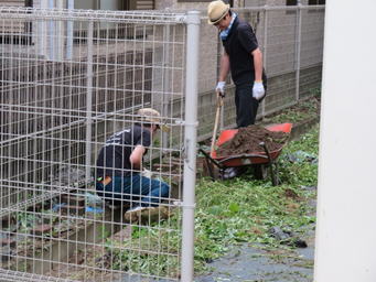 体育館わきの側溝は、大雨が降ると溢れてしまいます。台風や大雨が来る前に、おやじの会のみなさんが側溝の泥掃除をしてくれました。子どもたちの通学路にもなっている場所なので、とても助かります。いつも、ありがとうございます。