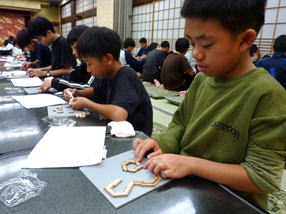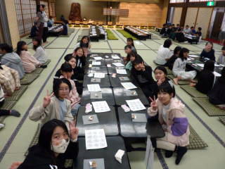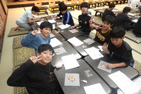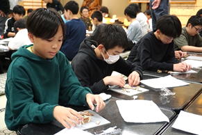 夜は、寄木細工体験を行いました。寄木細工の職人さんからお話を伺いました。自分のオリジナルの寄木細工を作ることができました。旅の記念になりました。