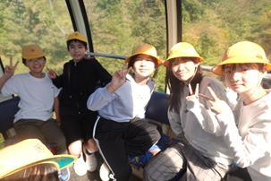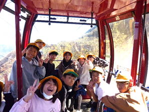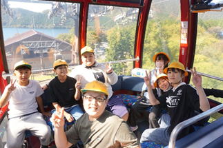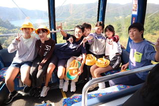 2日目には、箱根ロープウェイに乗りました。とてもいい天気で大涌谷もよく見えました。空中散歩をみんなで楽しみました。